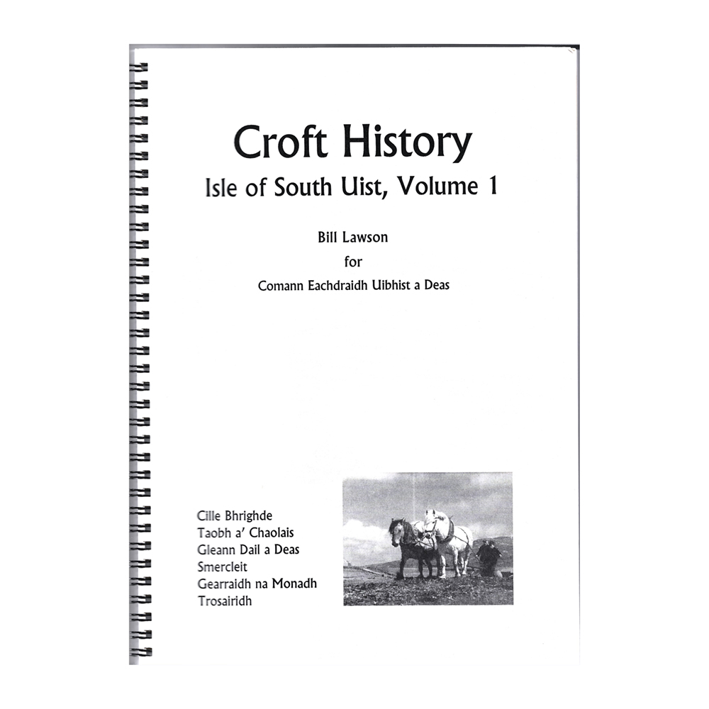 The Croft History for the villages of Cille Bhrighde (West Kilbride), Taobh a’ Chaolais (East Kilbride), Gleann Dail a Deas (South Glendale), Smercleit (Smerclete), Gearraidh na Monadh (Garrynamonie) and Trosairidh (Trossary) on the Isle of South Uist. 111 pages. ISBN: 1 872598 03 X