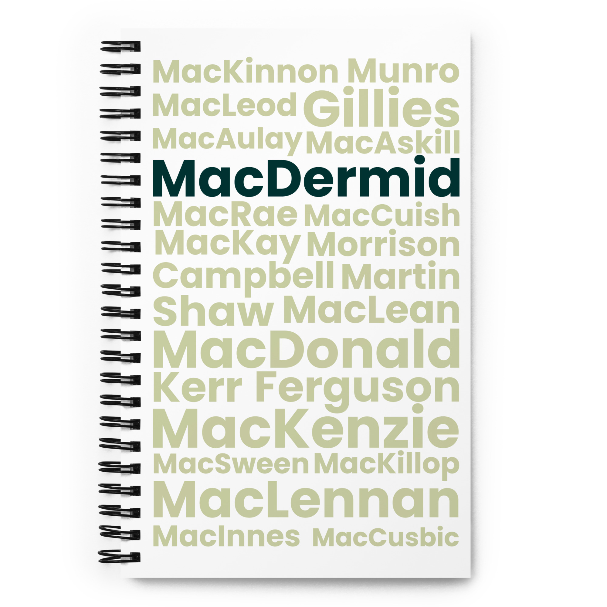 A custom wire-bound notebook will be a great daily companion whenever you need to put your thoughts down on paper, with the common Harris surname MacDermid!